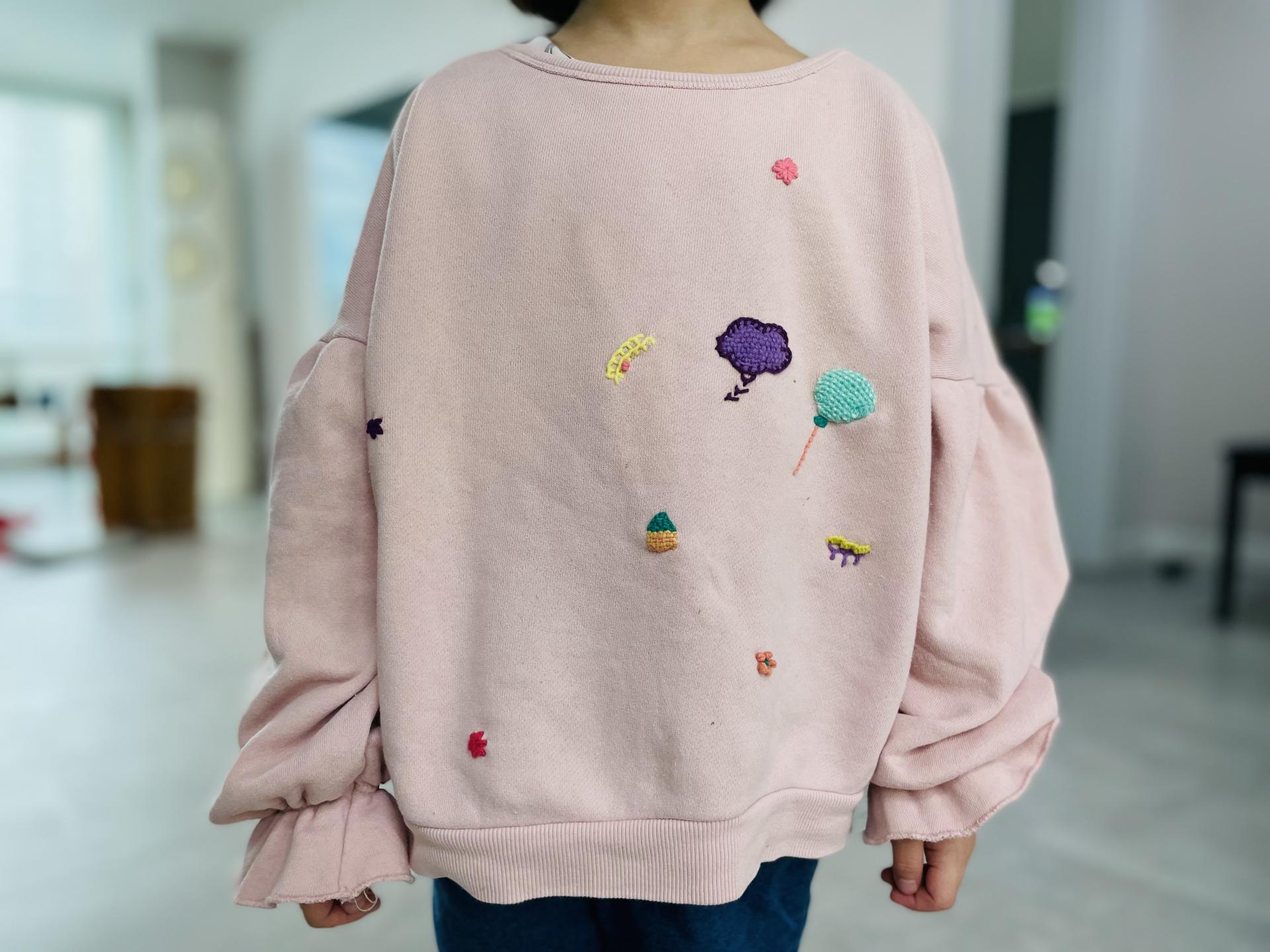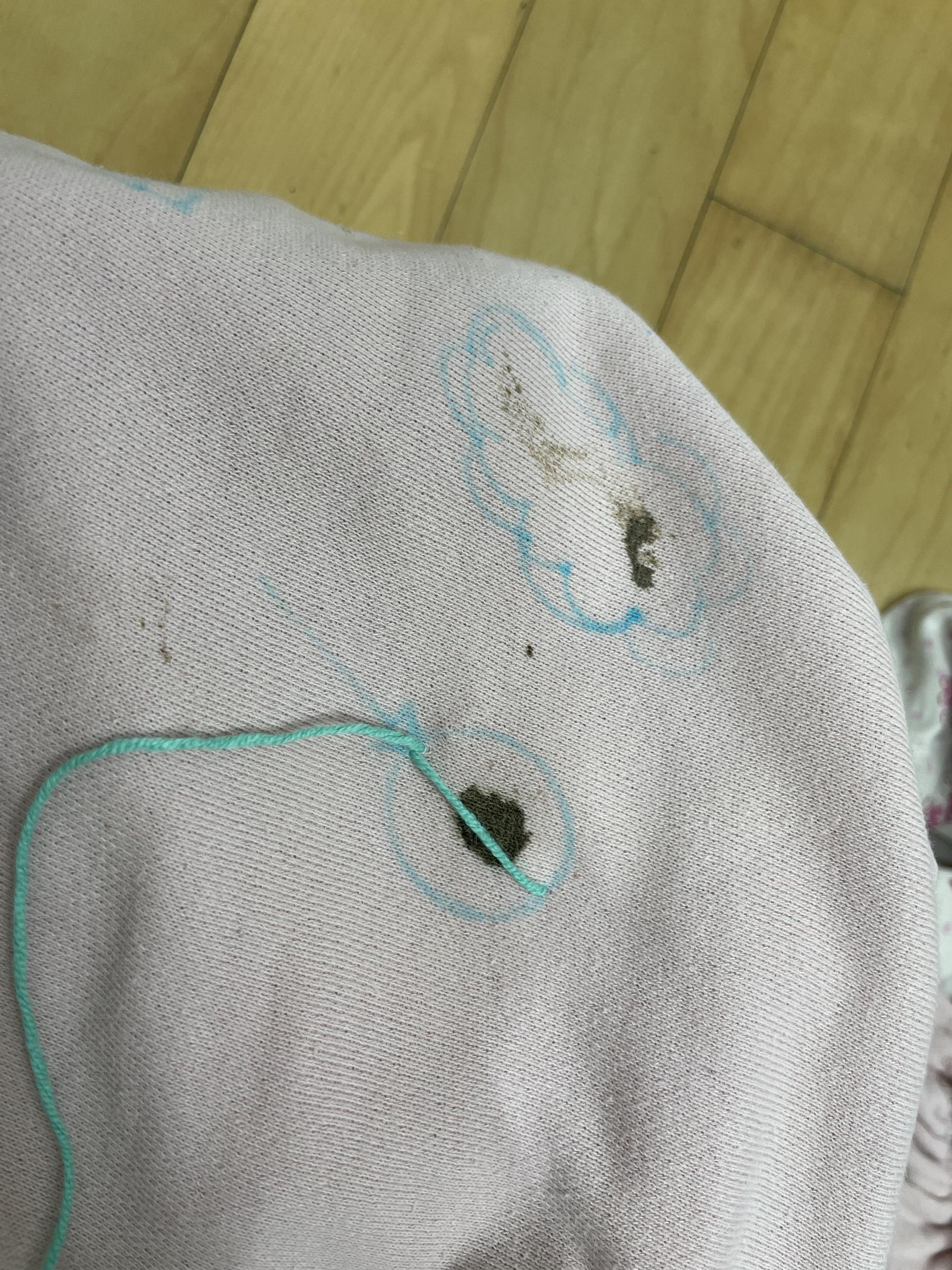 5살 둘째딸 옷에 뭐가 묻었는지, 세탁 되지 않아 자수를 놓아주었어요~