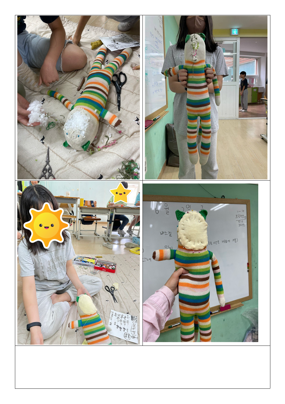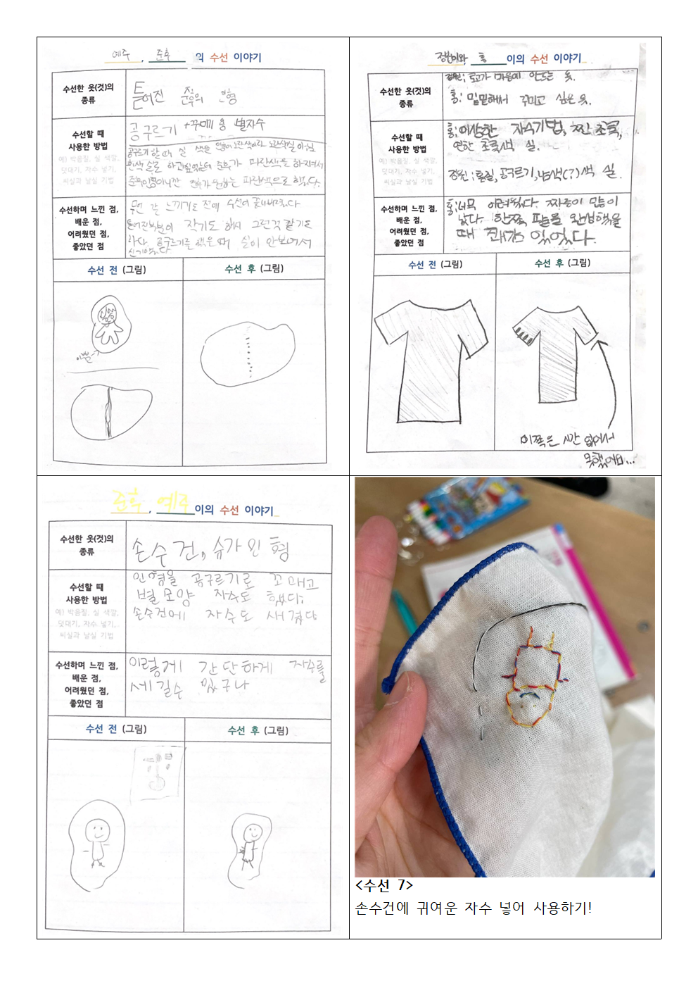 어린이들이라 재봉틀을 사용하거나 섬세한 바느질 실력은 없지만